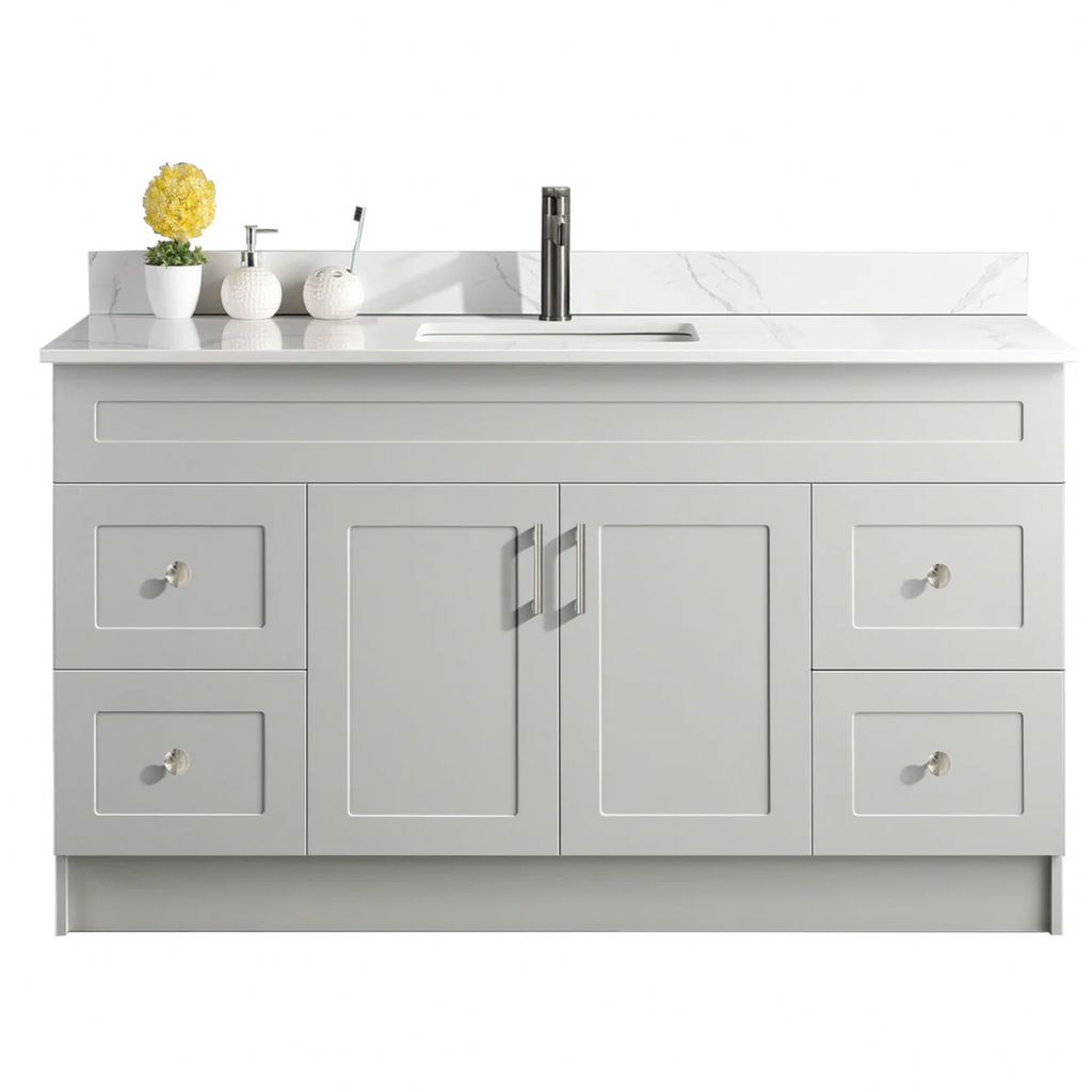 Featuring a clean, minimalist design this vanity commands attention while expertly maximizing your available floor space. The High-Density Fiberboard(HDF) construction provides durability and a smooth, consistent finish. It is the perfect blend of style and affordability. Crafted with precision, these cabinets offer a cost-effective solution without compromising on quality. Designed and Assembled in Canada, this collection is sure to transform any bathroom into a haven of timeless elegance.