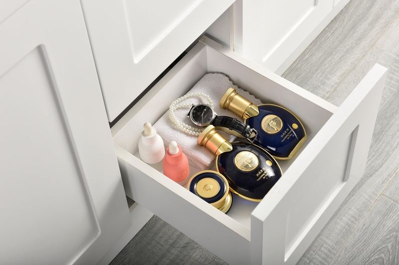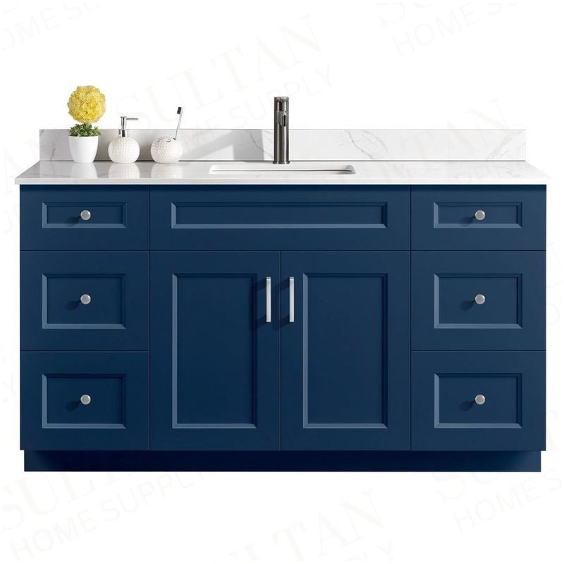 This contemporary vanity set, inspired by North American design, is an ideal complement to your bathroom's aesthetic. Featuring stylish bath furniture with premium finishes, it's crafted from eco-friendly solid wood. Perfect for those looking to update their bathroom with the latest modern styles, this vanity set meets the mark. Designed with compact spaces in mind, the 60-inch vanity seamlessly fits into small bathrooms, instantly enhancing your living space.